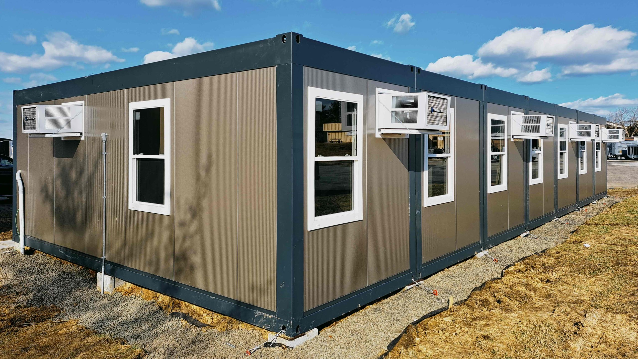 By utilizing modular construction, IteraSpace delivered this 4,500-square-foot temporary office building at AFB Andrews with exceptional cost efficiency. The strip foundation design reduced groundwork expenses compared to a full concrete slab, while our pre-fabricated modules accelerated assembly—completed in just 120 days.