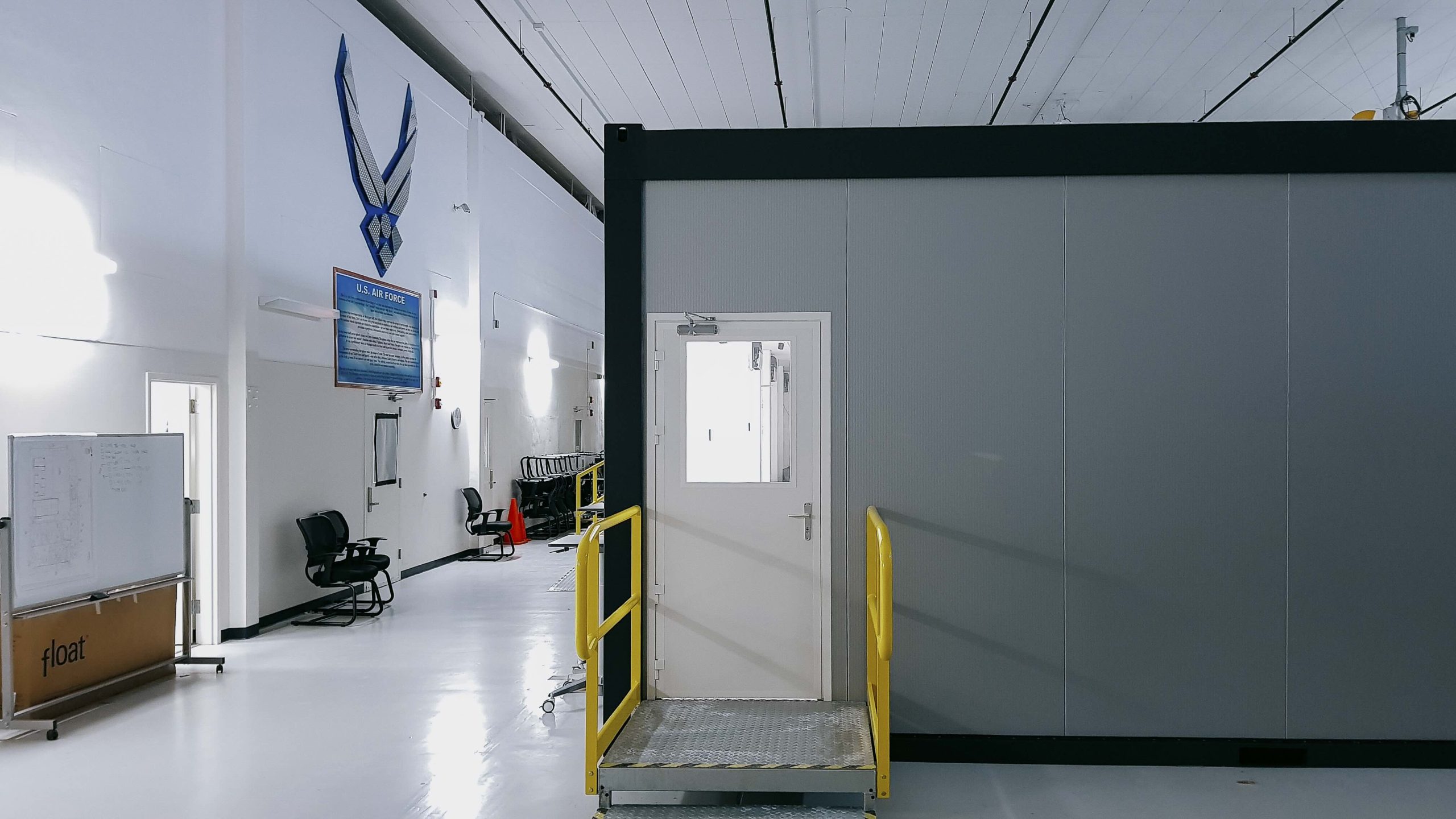 IteraSpace’s modular building approach shines in this project, leveraging our OptiMax system to create a fully customizable, temporary structure. Pre-fabricated at our facility, the modular units were transported to AFB Andrews and assembled on-site with strip foundations, minimizing environmental disruption and construction time. This method allowed for rapid deployment while maintaining structural integrity and adaptability.